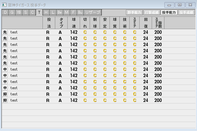 基準値として、全選手をオールCにした場合の成績を集計した。